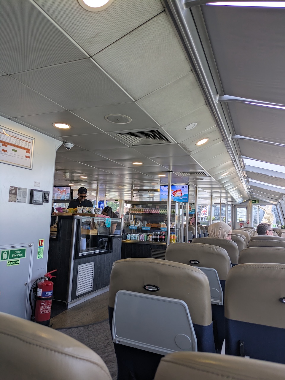 I made the Uber Boat just in time, with the gangway being raised as soon as I boarded. The outside space was all full and inside was unbearably hot, but it does have a bar.