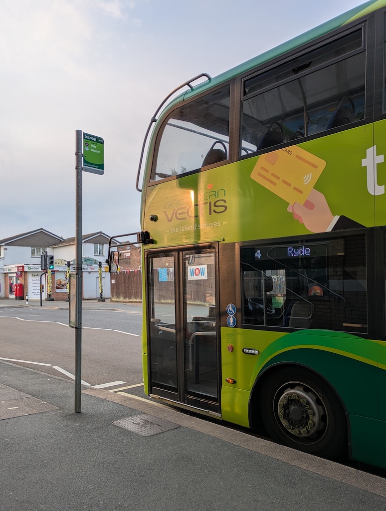 Not the most frequent or scenic bus ride on the island, but it avoids an unnecessary trip to Newport. There is not much traffic about at that time of the morning in the school holidays, so despite the driver stopping for a few minutes to catch up on the gossip with a woman sat waiting by the road, we arrived into Ryde right on time.