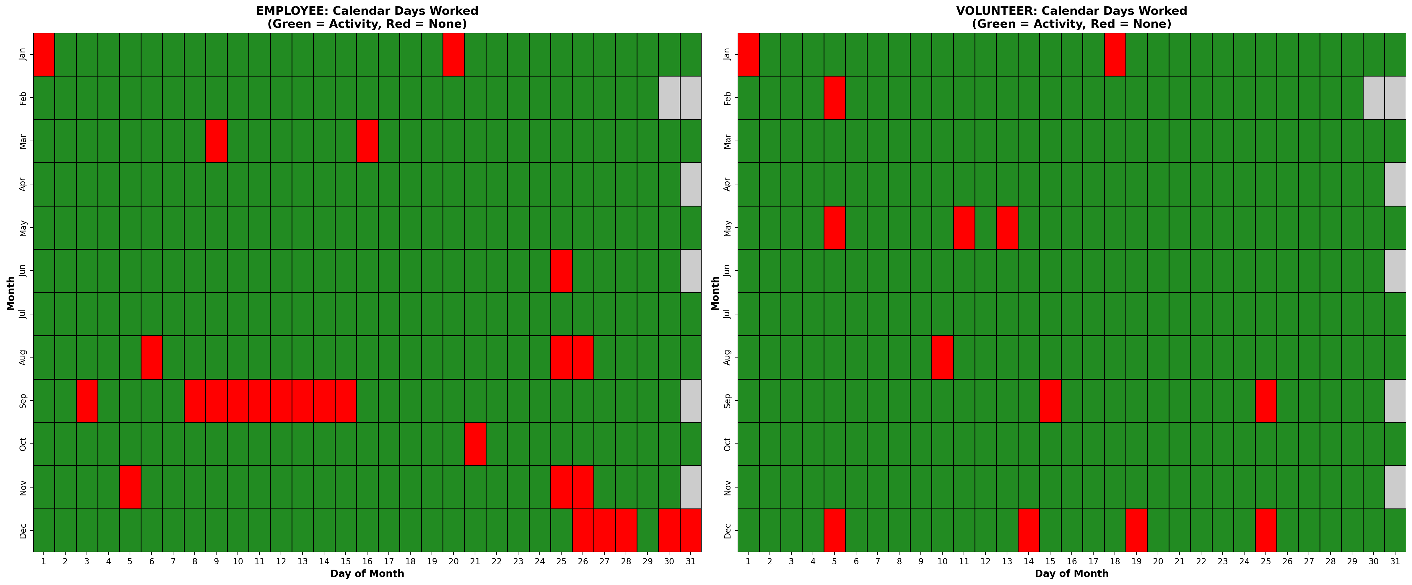 Looking at days that I worked/volunteered on across all the years covered, there were only two calendar dates with no recorded activity at all - 1 January and 15 September. I am glad to have bagged 29 February!